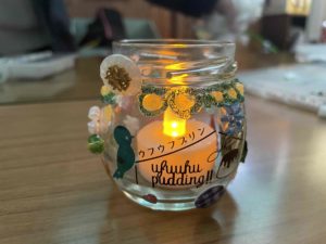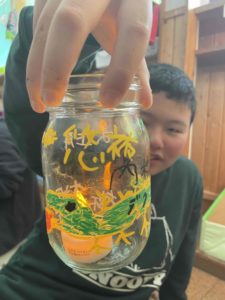絵を描いたり🎨文字を描いたり📝ボタン等を使って空き瓶を可愛く💖しました🎶