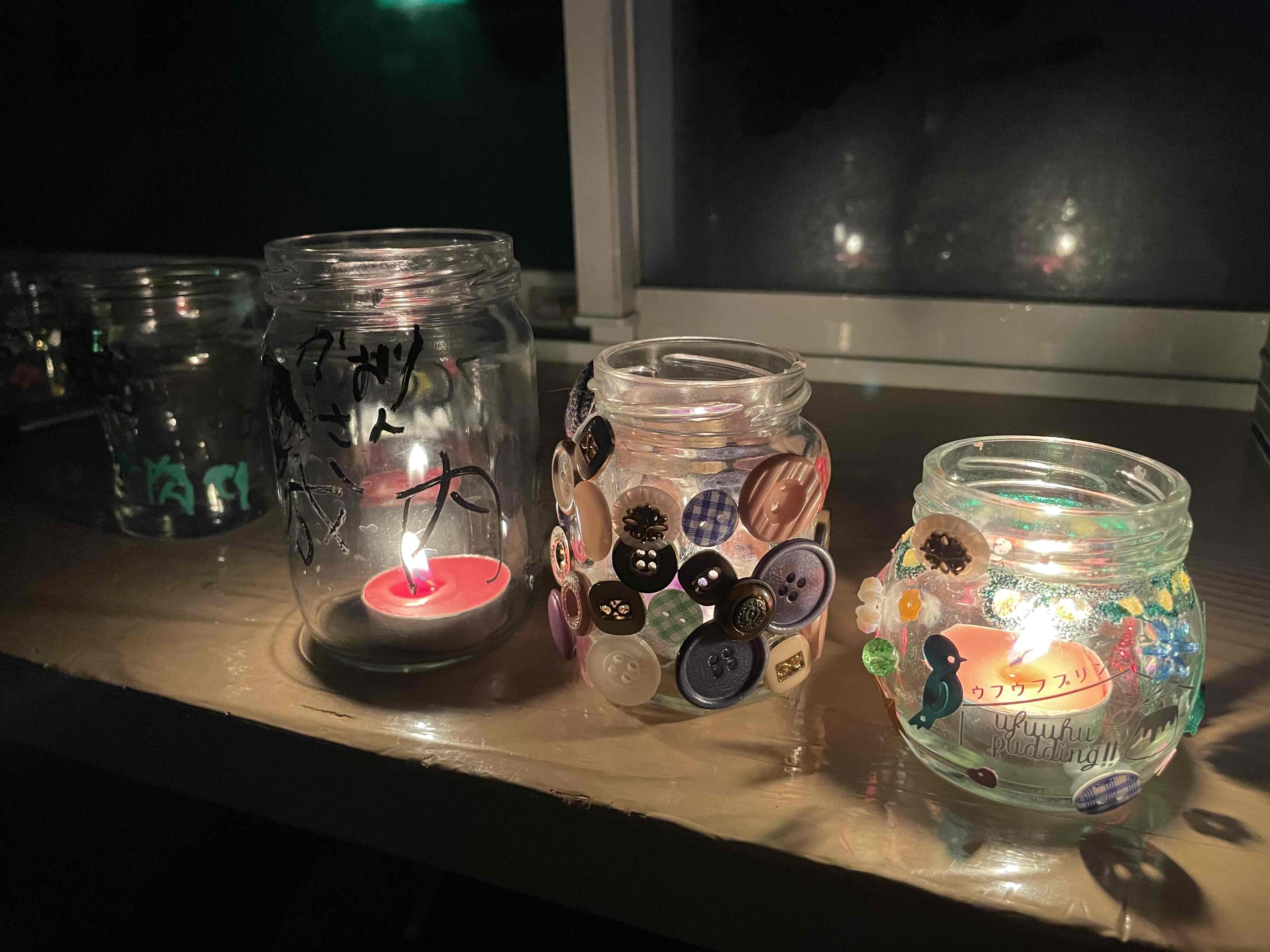 ちなみに午前中に作ったランタンを夕方にライトアップすると、とってもきれいでした✨✨👀