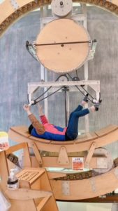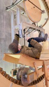 この自転車みたいなものを漕ぐと🚲チョークが動き出して、奥の黒板に書くという面白い仕組みになっていましたよ😁