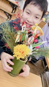 門松はスタッフの作り方の説明を聞きながら👂好きなように松やお花、南天の実などを飾ってオリジナルのお正月飾りを完成させていました😆🎶