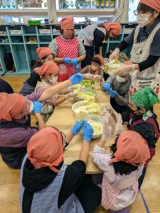 白菜🥬をちぎったり、肉団子🍖をつくったり、お肉を白菜の間🥙に挟んだり…